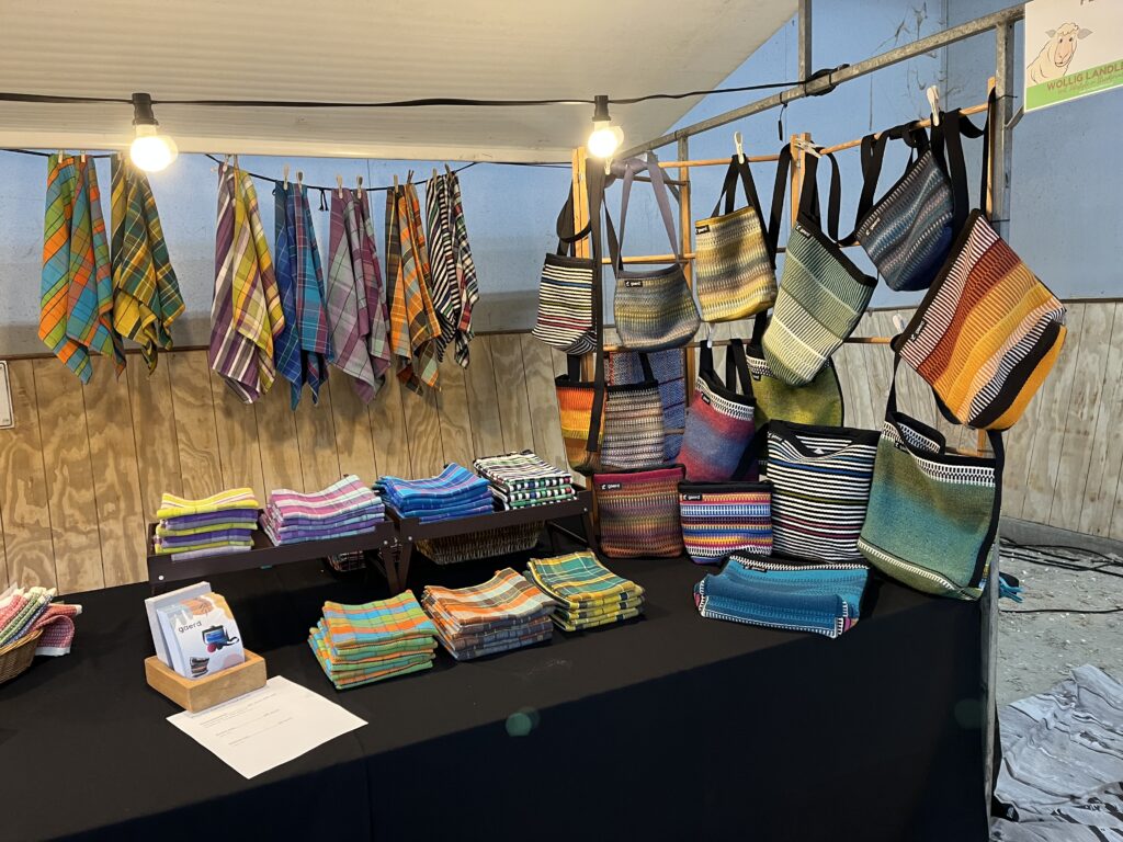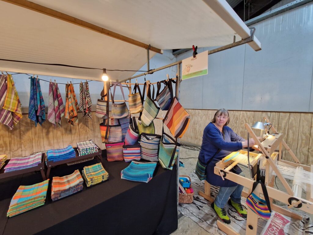 Het weekend van zaterdag 22 en zondag 23 februari 2025 is het nieuwe ‘fair-seizoen’ van Wolliglandleven in het hippisch centrum in Exloo van start gegaan. Het was ook de eerste keer dat Gaerd Weefwerk zichzelf en haar werk presenteerde aan de bezoekers van een fair. De eerste dag was het over de gehele dag bezien niet heel druk, maar het bood daardoor wel de gelegenheid met belangstellenden in gesprek te gaan. Het is die eerste dag dan ook een gezellige en leerzame dag geworden met ervaringen en inzichten met betrekking tot de werkstukken die de bezoekers van deze fair mooi vinden, wat ze eraan bevalt, waarvoor concreet belangstelling is en/of waarom (niet)? De tweede dag, de zondag, was het een stuk drukker. Wat vooral van veel mensen de aandacht trok, was de weefster in actie op het weefgetouw, met daarop een werkstuk(je) waarvoor de bezoekers steeds de kleuren mochten uitzoeken.